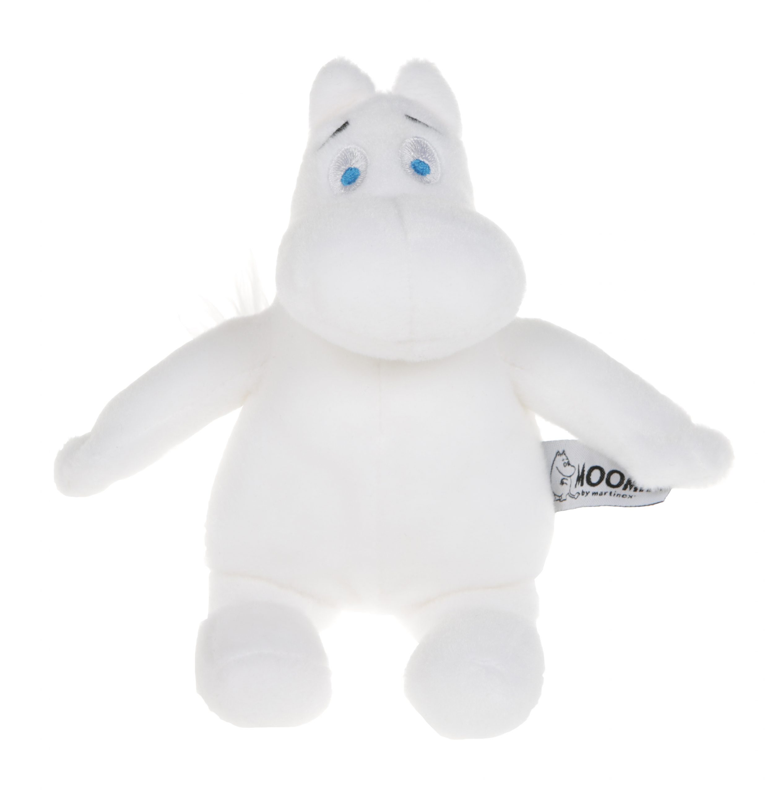 Mjuk och gosig Mumintrollet beaniemjukis, höjd 15 cm när han sitter. Mjukisen känns stadig tack vare ”bönorna” baktill. Tvättbar max 30 °C. Alla Martinex mjukisar är CE-märkta, giftfria och barnsäkra med dragfasta sömmar och detaljer. 0+
