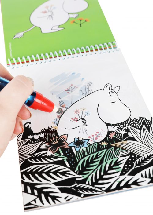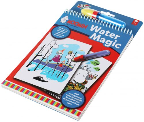 En magisk målarbok med muminbilder som går att använda om och om igen. Fyll upp pennan med vatten och måla på någon av de 6 bilderna. Färger och figurer uppenbarar sig! När vattnet torkar blir sidan vit igen. Perfekt på resan! Åldersrekommendation 3+