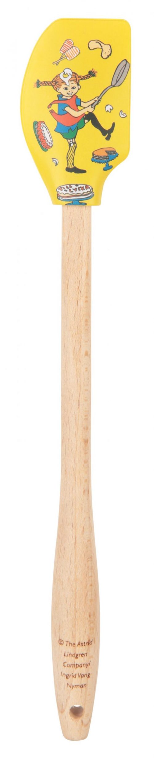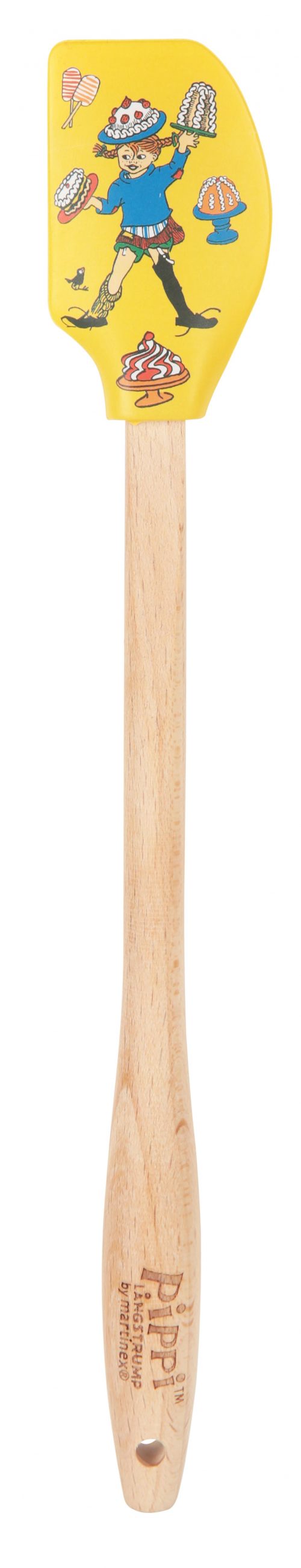 Astrid Lindgrens älskade Pippi Långstrump i vår bakserie Pippi L bakar. En minislickepott med ett knallgult silikonblad och Pippi Långstrump bland tårtorna i färg på bägge sidor. Det runda skaftet är av trä och högst upp på skaftet finns det ett hål för upphängning på tunn krok. På skaftet står det Pippi Långstrump by martinex i lasergravyr. Handdisk rekommenderas. Levereras i pappställ. Max temperatur 40°C.