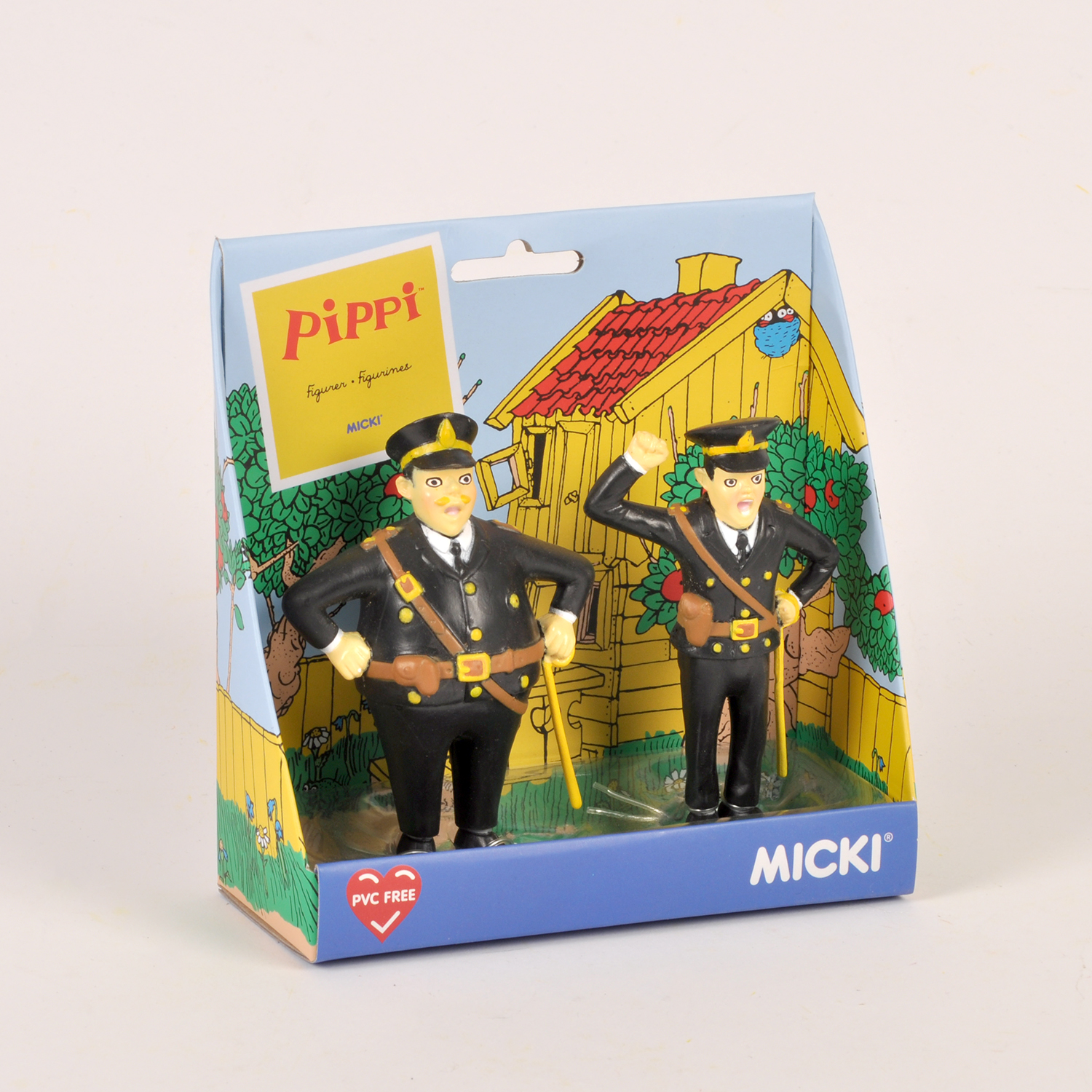Figurset med poliserna Kling och Klang, för roliga lekar i dockskåpet Villa Villekulla. De här tokiga poliserna försöker få Pippi Långstrump att flytta in på barnhemmet, men Pippi lurar dem varje gång. Ftalat- och PVC-fri plast.
